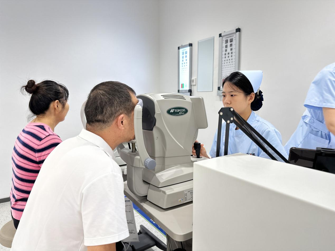 在随后的眼健康检查中,医疗团队为老兵们进行裂隙灯检查、验光等基础项目。针对普遍存在的白内障合并老花问题,专家现场讲解三焦点人工晶体技术:该技术通过一次手术,可同步解决白内障、老花、近视等问题,术后无需佩戴眼镜。