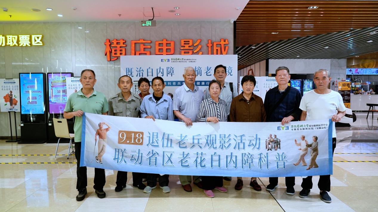 此国庆节,安徽爱尔眼科医院开展光影铸军魂——致敬退役老兵特别观影活动,组织数十名退役老兵观看历史题材电影《731》,并为其提供免费眼健康检查。